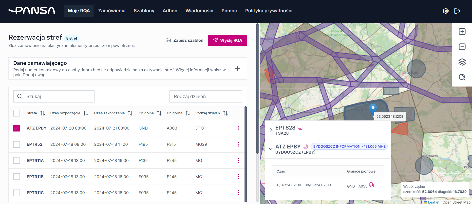 Udostępniamy serwis internetowy, za pomocą którego, uprawnieni użytkownicy (patrz niżej) mogą składać zamówienia na elastyczne elementy przestrzeni powietrznej.